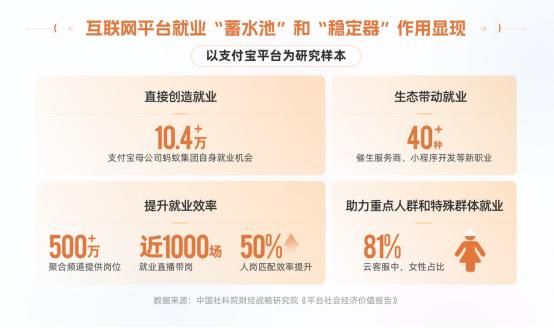 除催生新职业以外,数字化技术也让互联网平台成为提升就业和求职效率的有效助力。数据显示,支付宝就业聚合频道上线两个月后,已联合50家合作机构累计为近200万招工企业发布超500万岗位,并成功促成近40万简历投递,人岗匹配效率提升50%,有效拉动就业。