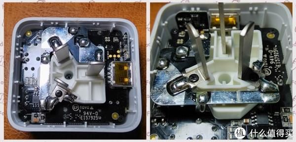 大家一定好奇这小小的插座里面长什么样吧,小编就为大家解开这个秘。小米智能插座的线路板为黑色,应该是因为刷了防氧化漆的缘故。仅从印刷板的作工就可以看出小米产品的品质。这块线路板上打着94V-0 E157925等字样,具体代表的意义不得而知。拆到这里,还看不到什么。主要元件应该都在背面。