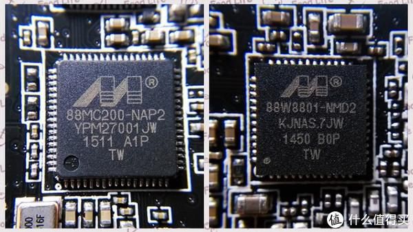 这两块芯片分别是88MC200微控制器和88W8801,由美满电子科技生产。具体有兴趣的大家可以上网上查一下相关资料。