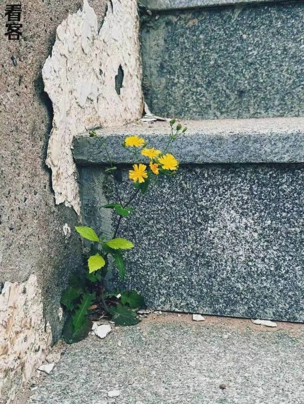 我的人生,就像斑驳的阶梯,现在长出了朵美丽的小黄花