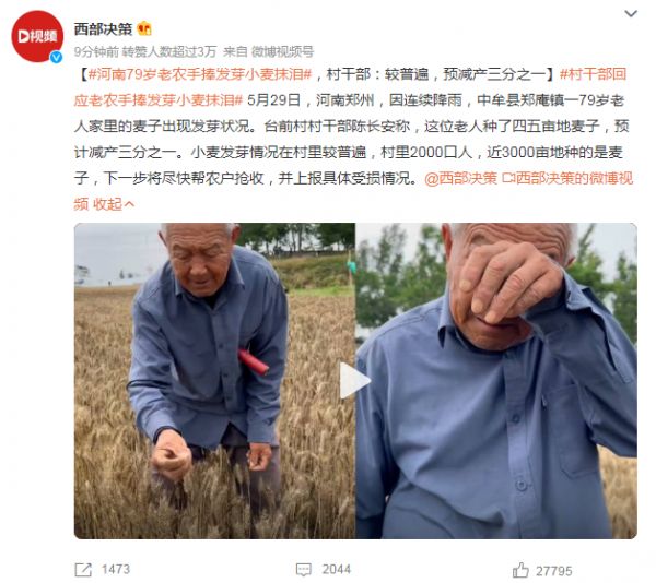 大雨造成小麦减产,灾情影响还在持续。(图/微博)