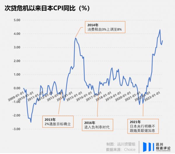 不考虑2014年因上调消费税造成的通胀短期上行,自2013年初日本央行设立2%的通胀目标以来,日本终于在2022年4月首次实现了这个目标。