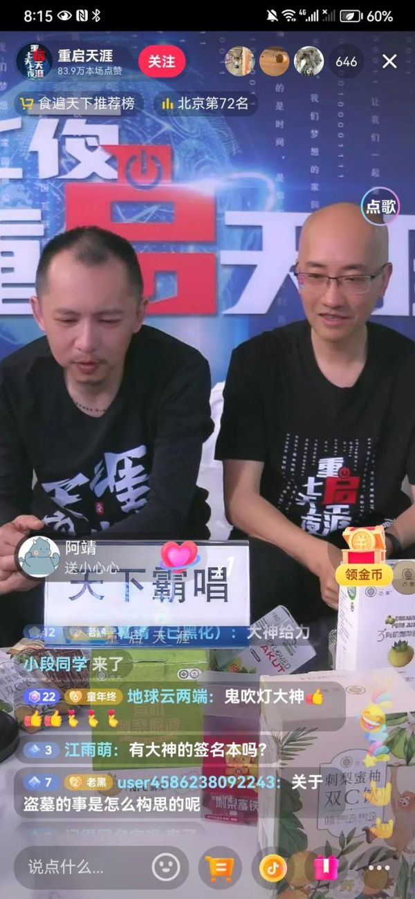 5月28日晚上8点,重启天涯正式在抖音开播。目前直播已经进行两天但距离其筹募人民币300万元的目标,仍相差一大截。