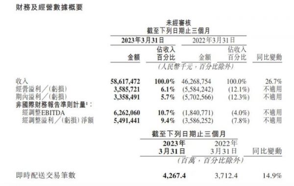 5月25日,美团公布的2023年第一季度业绩报告显示,公司各项业务继续取得稳步增长,其实现营收586亿元,同比增长26.7%。基于稳健的经营策略,其销售成本率和营销费用率同比、环比双降。在此带动下,美团2023年第一季度经营利润扭亏为盈,达到35.9亿元。