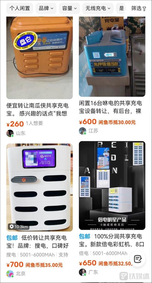 大的点位签不了,小的点位没流量,还时不时被运营商刺,这就是现在绝大多数代理商的处境,闲鱼往往成了投资者的最后一站。在闲鱼上搜索共享充电宝转让,会看到各种各样品牌的设备或者单个充电宝转让的信息。