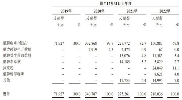 魔胴咖啡这个大单品确实拉动了业绩,也是巨星传奇冲击港股上市的主要抓手。但是,随着防弹咖啡这个新概念祛魅,品类热度下降,魔胴咖啡销量下降,最近3年分别为331.5万盒、213.3万盒、138.1万盒,收入分别为3.33亿元、2.28亿元、1.51亿元——降价销售,都挡不住每年缩水三分之一的步伐。
