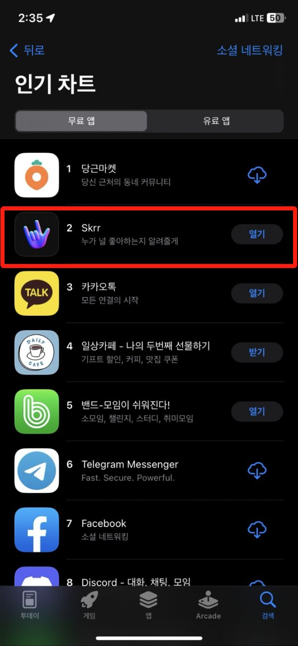 韩国榜单比起日榜、美榜,变动要大得多。但近一个月,韩国免费总榜上有 2 款匿名社交 App 成绩坚挺。