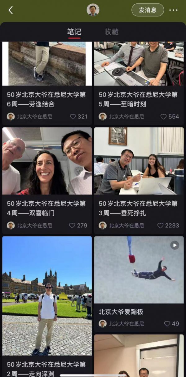 如果他不做出留学的决定,现在的他会过着什么样的生活呢?在国内忙碌于自己做了一辈子的工作,或是作为一名普通北京大爷,有妻子子女陪伴身旁。按部就班、平淡自如,这样的五十岁当然很好。但是,他将永远错过这个奋斗在悉尼大学的图书馆与教室,脑子像海绵一样疯狂吸收着海量新知识的五十岁的自己了。