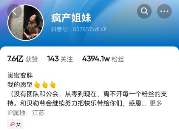 图源:抖音截图“疯产姐妹”没有挂靠任何机构,由邵雨轩和张小花两人合作,靠着闺蜜日常抓住流量密码,一跃成为拥有4000多万粉丝的顶流账号。但最后,还是不得不散伙。