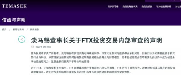 本周一(5月29日),淡马锡董事长林文兴(Lim Boon Heng)在一份内部审查后的声明中表示:“对于 FTX,正如检察机关所指出、FTX 和附属机构主要高层也已承认的那样,FTX 进行了欺诈行为,故意对包括淡马锡在内的投资者隐瞒信息。”
