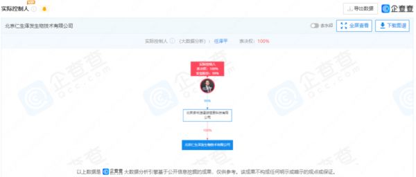 企查查数据显示,北京仁生泽发和苏州仁生泽发生物技术合伙企业的实际控制人均为任泽平。其中,苏州仁生泽发生物技术合伙企业的执行事务合伙人也为任泽平;苏州仁生泽发生物科技有限公司的股东之一为任泽平,苏州仁生泽发生物技术合伙企业也是其股东之一。