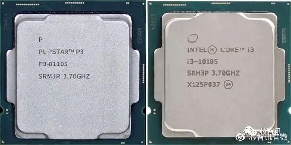 根据官方公布的图片来看,暴芯处理器型号为“PL PSTAR P3-01105”,频率为3.7GHz,虽然未公布更多具体规格资料,但其外观和Intel LGA1200封装的10代酷睿完全一致,结合编号、频率看,貌似就是i3-10105的复刻版:14nm,4核心8线程,主频3.7-4.4GHz,三级缓存6MB,核心UHD 630,热设计功耗65W。