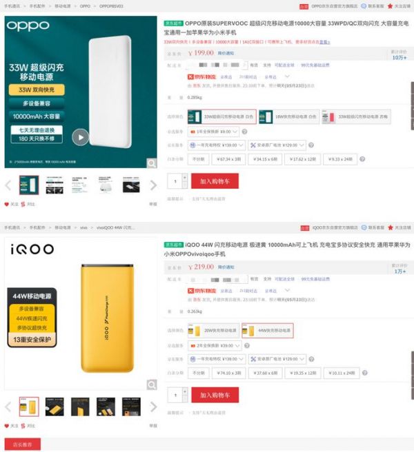 (图片来源:OPPO及iQOO京东自营旗舰店截图)
