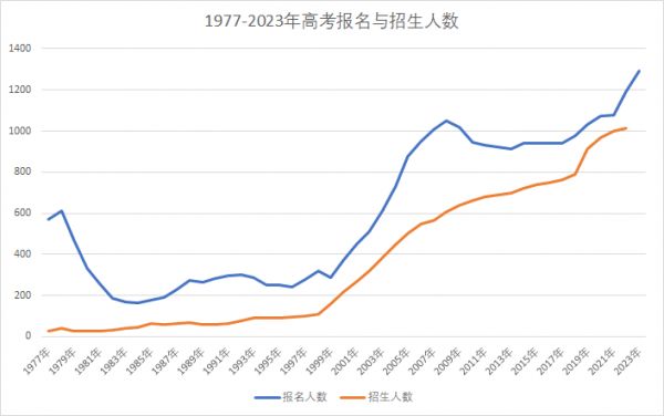 2023年高考报名人数1291万,创下历史新高。高考报名人数2008年后曾连续下跌5年,2013年跌至912万人,几乎跌破900万。但最近10年出现连续增长,2020年报名人数超过1070万人,超越2008年曾经创下的1050万人的纪录,创下历史新高。近年更是连续增长,不断创下新高,为什么?