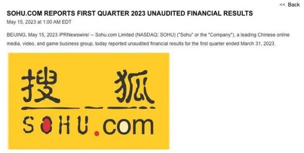 图源:搜狐2023年5月15日,搜狐披露了2023年Q1财报,营收1.62亿美元,同比下降16%;非美国通用会计准则净亏损为1300万美元,表现优于此前预计的亏损1500万美元-2500万美元。