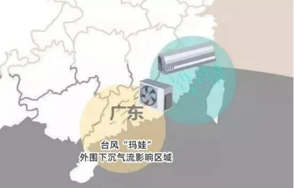 台风“玛娃”带来的下沉气流,犹如“空调外机”,图源:南方日报