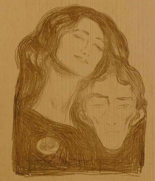 ▷ 挪威画家 Edvard Munch 患有边缘型人格障碍,图为他 1903 年的作品《莎乐美》。几天之内,他以两种方式描绘了他的新朋友小提琴家伊娃·穆多奇。先是“恋爱中的男人眼中的女人”,后是“嗜血自相残杀的莎乐美”。