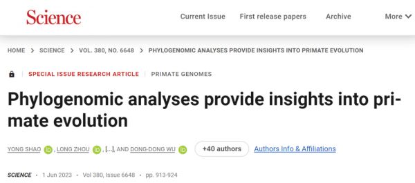 在Science专刊的8篇论文中,题为“Phylogenomic analyses provide insights into primate evolution”(《基因组学分析提供了对灵长类演化的洞见》)的研究论文是一篇基础性的、重要的旗舰论文。它是由浙江大学生命演化研究中心张国捷教授团队联合昆明动物研究所吴东东教授团队、西北大学齐晓光教授团队和其他国内外合作者完成的。今天我们推出对这篇旗舰论文的清晰、系统的解读,以飨读者。