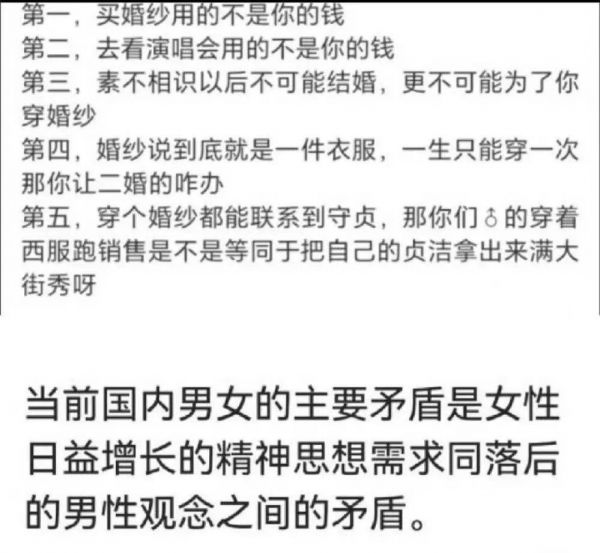 近日,在一则“女生穿婚纱看演唱会被分手”的热搜话题下,很多男生表示自己不能容忍女友为偶像穿婚纱的行为,认为她们亵渎了爱情与婚姻的圣洁,故而提出分手。