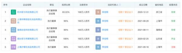 天眼查显示,若与传媒成立于2020年,法定代表人为李佳桐,持股比例100%。除若与传媒外,李佳桐旗下还有上海华韩恒佳化妆品有限公司、海南屹佳科技有限公司等。