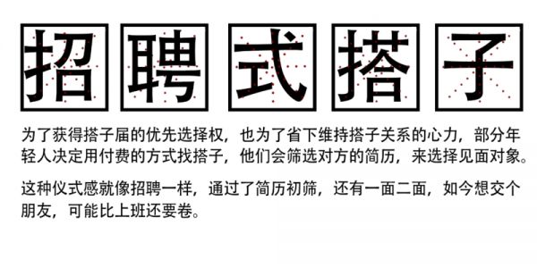 无论是通过搭子相亲,还是招聘式找搭子,搭子已经逐渐脱离了精准陪伴的轻社交,成为了一场关乎尊严的“面试”。