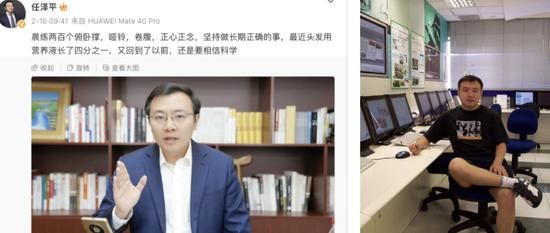 早在今年2月5日,任泽平就已在为带货蓄势,当天的一条微博中,除了按惯例说明自己每天“晨跑五公里,一百个俯卧撑、卷腹”,他一反常态植入了养发内容:“最近明显长头发,还是要相信科学。说明:三个月头发变多变粗变黑,没有植发,用的一种营养液科学方案,每天几分钟”,并配上自己一头黑发的照片。