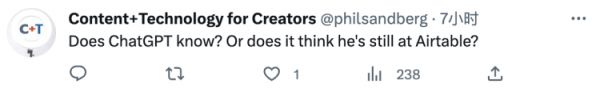 还有人打趣,“ChatGPT知道这件事吗?会不会它仍认为Peter还在Airtable上班?”