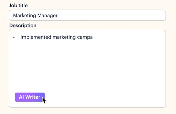 定制:AI 根据职位描述,为简历生成个性化建议,可能包括重写某些句子、添加或删除某些部分、突出特定技能或经验等。