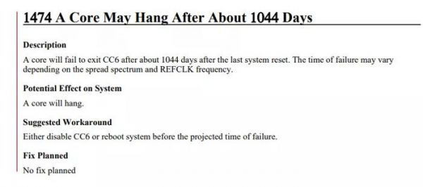 使用这款 EPYC 芯片的服务器,需要每隔 2.93 年时间重新启动一次,AMD 官方表示不会修复上述 BUG。