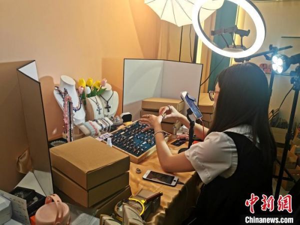 全透明玻璃的直播间内,一名年轻的女主播一边靠近镜头展示戴在手上的饰品,一边用流利的英语介绍产品规格,并不时和网友互动。这是3日记者在湖北谷城县跨境电商产业园一海外直播间看到的场景。