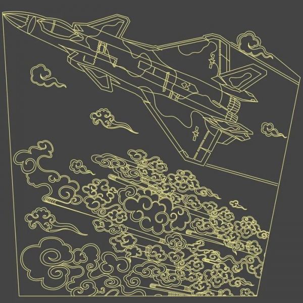 设计采用原创中国隐身战机线图,搭配祥云图案