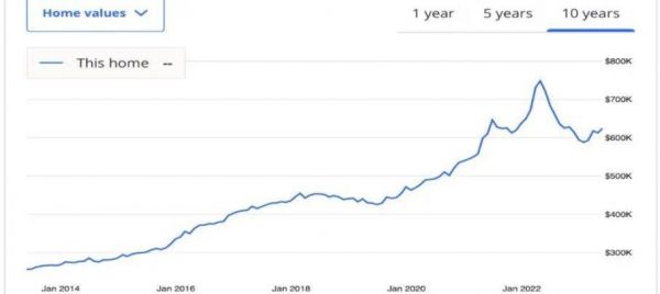 以下是美国西雅图地区的典型工薪阶层居住的200平方米独立屋过去十年的价格实际走势: