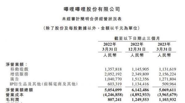 在经营成本方面,2023年第一季度B站经营开支总额为人民币25亿元,较2022年同期减少11%。值得注意的是,这是自从2021年第二季度之后,最低的开支。