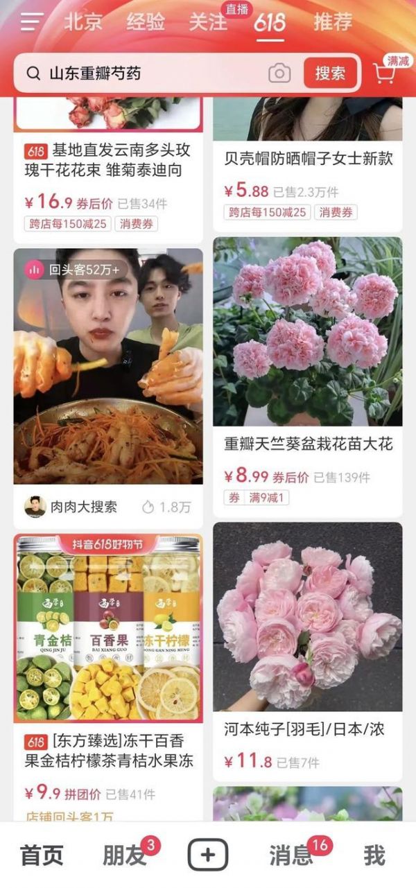 但现在,抖音首页的五大页面中,除了同城、关注、推荐页面仍保持单列上下滑形态,新增的经验和电商页面,均以双列瀑布流的形态出现。