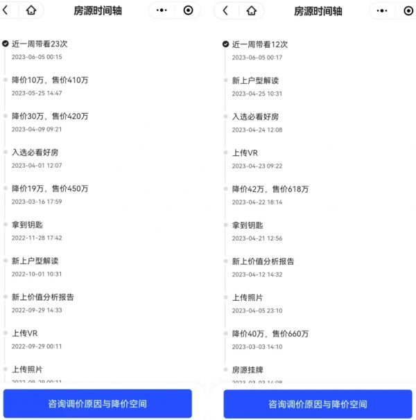 直到过去半年,他才下定决心,“房价走低的趋势已经形成,短期内很难逆转,而自己的房子也并非核心品牌楼盘,必须得尽快脱手了。”结果,房子被压到了400万出头这个价格,甚至还赠送了一个车位。但他又很庆幸,已经脱手了这个可能会不断缩水的资产。因为过了不到一个月,该小区同户型的房子挂牌价已经降低到了400万以下。