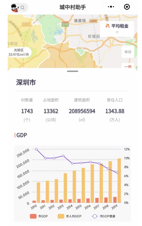 综合珊瑚数据“城中村助手”以及公开资料,深圳拥有约360平方公里城中村建筑,约占20%土地⾯积,居住着超过1000万人口。也正因此,城中村是统租的重要对象。