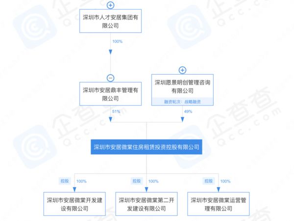 据企查查,微棠背后股东有两家,一家是深圳市安居鼎丰管理有限公司,占比51%,其股东是深圳市人才安居集团;另一家是深圳愿景明创管理咨询有限公司,持股49%,2021年贝壳曾对该公司投资7亿元。