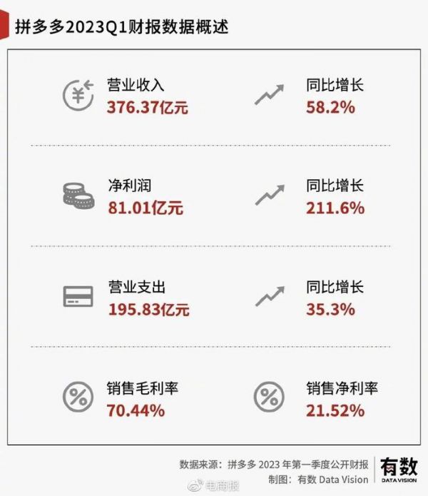 拼多多CEO陈磊在电话会议中表示,收入的增长一方面来自拼多多的良性平台生态建设,一方面得益于整个消费市场的复苏:“在过去一个季度,我们发现市场消费意愿持续回升,消费者购买力得到进一步释放。”