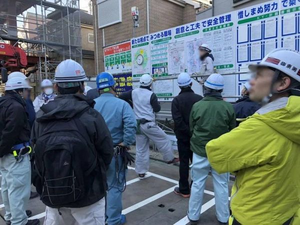 我们在开早会之前会先做广播操,之后两人一组,边用手指着、边确认“安全帽,ok!安全带,ok!服装,ok!鞋子,ok!”就这样 ok 一圈。我最初以为这些都是很表面的东西,大家随意就行,但实际上大家都非常认真。不认真的都是像我一样的外国人,基本都要被上面的人说一下之后才会认真。