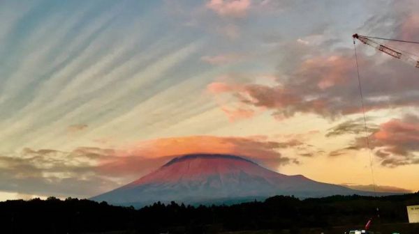 ■ 乌冬在工地上拍的夕阳下的富士山
