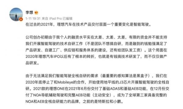 谁都没错,实在要怪只能怪时机不对。理想汽车创始人李想曾在微博上透露过他的反思,“公司创办初期我个人的融资水平实在太差、太差、太差。有限的资金并不能支持我们开展智能驾驶的技术自研工作。”