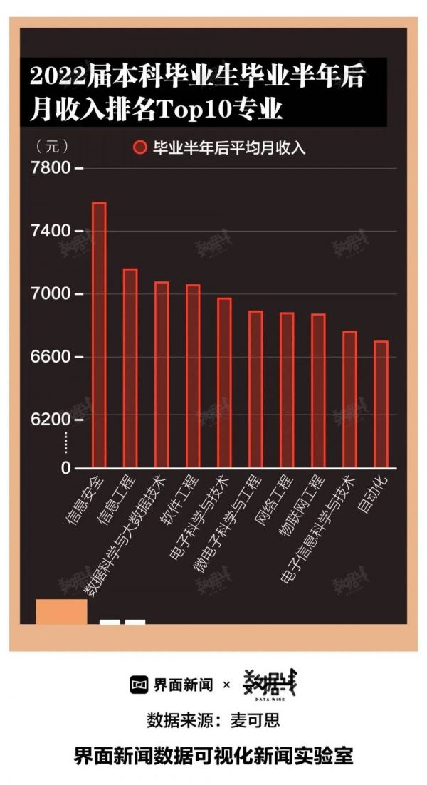 工学已霸榜最赚钱专业。据《2023年中国本科生就业报告》,2022届本科毕业生月收入最高的10个本科专业均属于工学类。最高的是信息安全,月收入7579元,信息工程、数据科学与大数据技术、软件工程3个专业月收入也都超7000元。