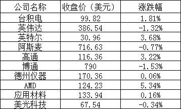 芯片龙头股多数上涨,AMD涨幅超过5%,英特尔和高通涨幅超过3%;英伟达和博通下跌,跌幅均超过1%。