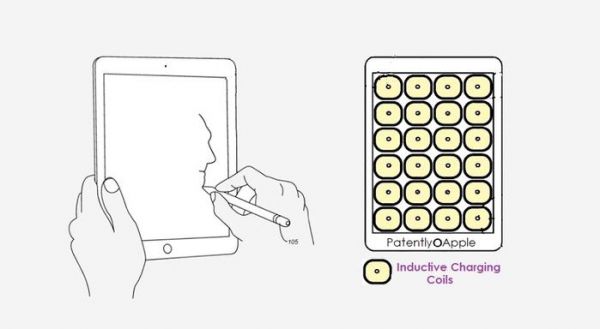 苹果在专利中表示,用户不再需要单独为 Apple Pencil 进行充电操作,Apple Pencil 上会引入了一个感应接收线圈,只需要将其放在 iPad 表面,就可以对其充电。