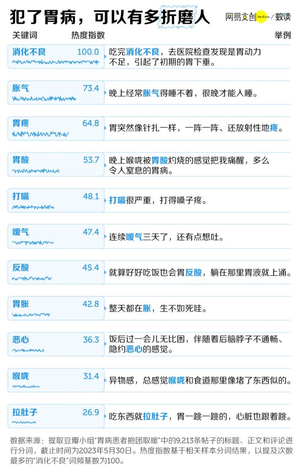 肠胃不好可不是件小事,轻则吃嘛嘛不香,重则痛得要命。在豆瓣“胃病患者抱团取暖”小组,48853 名“小难受”聚集于此,发帖记录胃病给他们带来的每一丝痛苦 [3]。