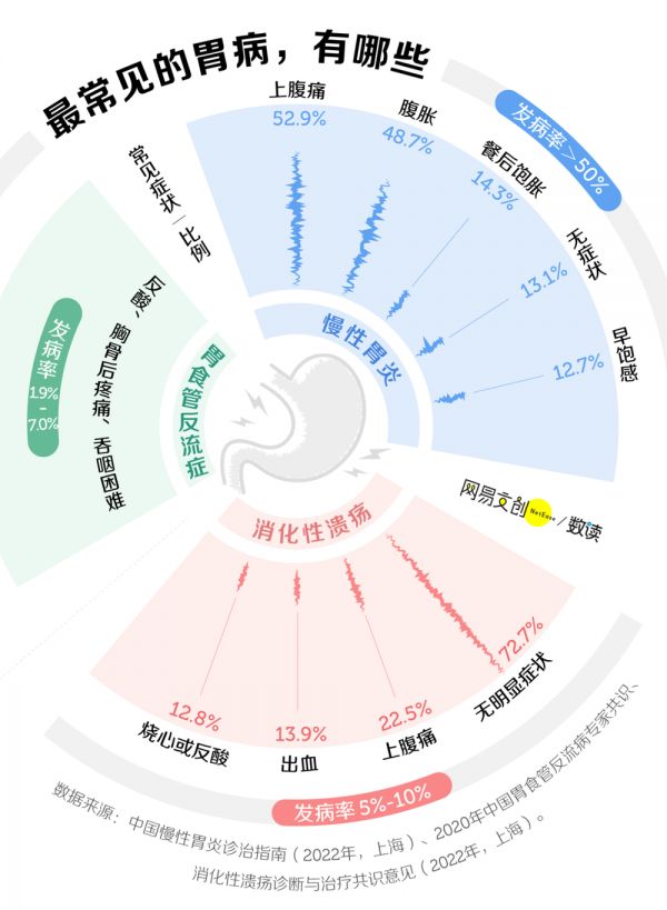 不同的胃有不同的“痛点”,我们整理了三种常见胃病的发病率及其症状。