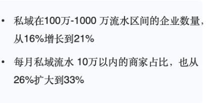 第一个数据,每月私域流水10万以内的商家占比,从26%扩大到了33%。