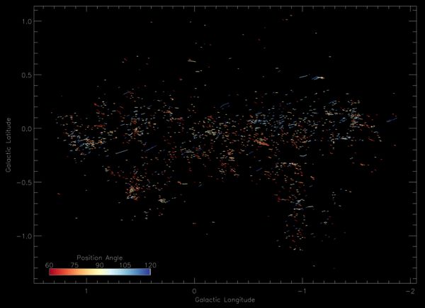 这样的发现让研究人员非常惊讶,他们已经习惯了在银心观测到垂直于银道面的细丝,从没预想过会出现这种情况。在进行了大量的分析工作后,他们才敢确定自己看到的画面。