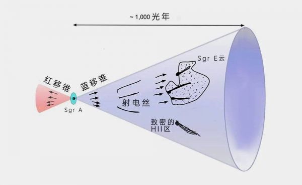 基于这些观测结果,研究人员认为,这些短的平行于银道面的细丝,很可能与几百万年前的发生在Sgr A*的一次活动的外向流有关,而这些细丝应该就是外向流出的物质与其附近物质相互作用的结果。