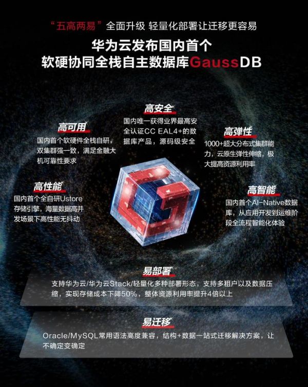 作为新一代分布式云数据库,GaussDB通过多维度的技术创新,在行业实践中构筑了高可用、高安全、高性能、高弹性、高智能的技术优势。也让甲骨文Oracle迎来了一个强劲的对手。可以预见的是,在数据库领域,华为和甲骨文的厮杀已不遥远。